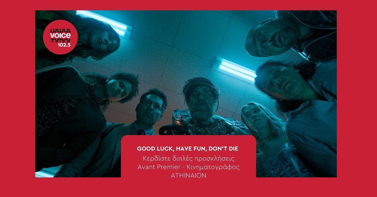 O Voice 102.5 και η Tanweer σας προσκαλούν στην πρεμιέρα της ταινίας “GOOD LUCK, HAVE FUN, DON’T DIE“, την Τετάρτη 11 Μαρτίου στις 20:00, στον Κινηματογράφο ATHINAION. Ο Σαμ Ρόκγουελ, μαζί με ένα all-star cast, πρωταγωνιστεί σε μία ξέφρενη, αλλόκοτη περιπέτεια που μας ταξιδεύει στο χρόνο, σε ένα μέλλον όπου η ανθρωπότητα παλεύει να σωθεί από την τεχνητή νοημοσύνη.