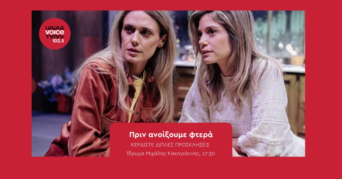 Το έργο «Πριν ανοίξουμε φτερά» του βραβευμένου Γάλλου συγγραφέα Φλοριάν Ζελέρ, ανεβαίνει στη σκηνή του Ιδρύματος Μιχάλη Κακογιάννη, σε σκηνοθεσία της Άννας Μαρίας Παπαχαραλάμπους.