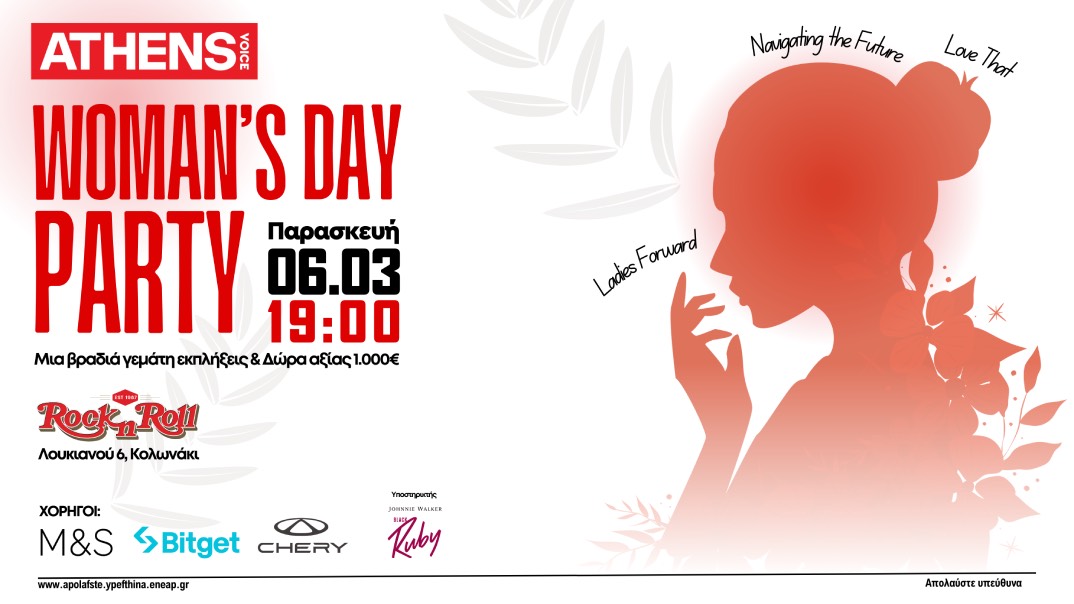 H Athens Voice φοράει τα γιορτινά της και γιορτάζει την Παγκόσμια Ημέρα της Γυναίκας με ένα Woman’s Day Party όπως μας αξίζει! Την Παρασκευή 6 Μαρτίου, από τις 7 το απόγευμα, δίνουμε ραντεβού στο Rock n Roll Athens (Λουκιανού 6, Κολωνάκι) για μια βραδιά γεμάτη μουσική, απολαυστικά κοκτέιλ και δώρα συνολικής αξίας χιλίων ευρώ.